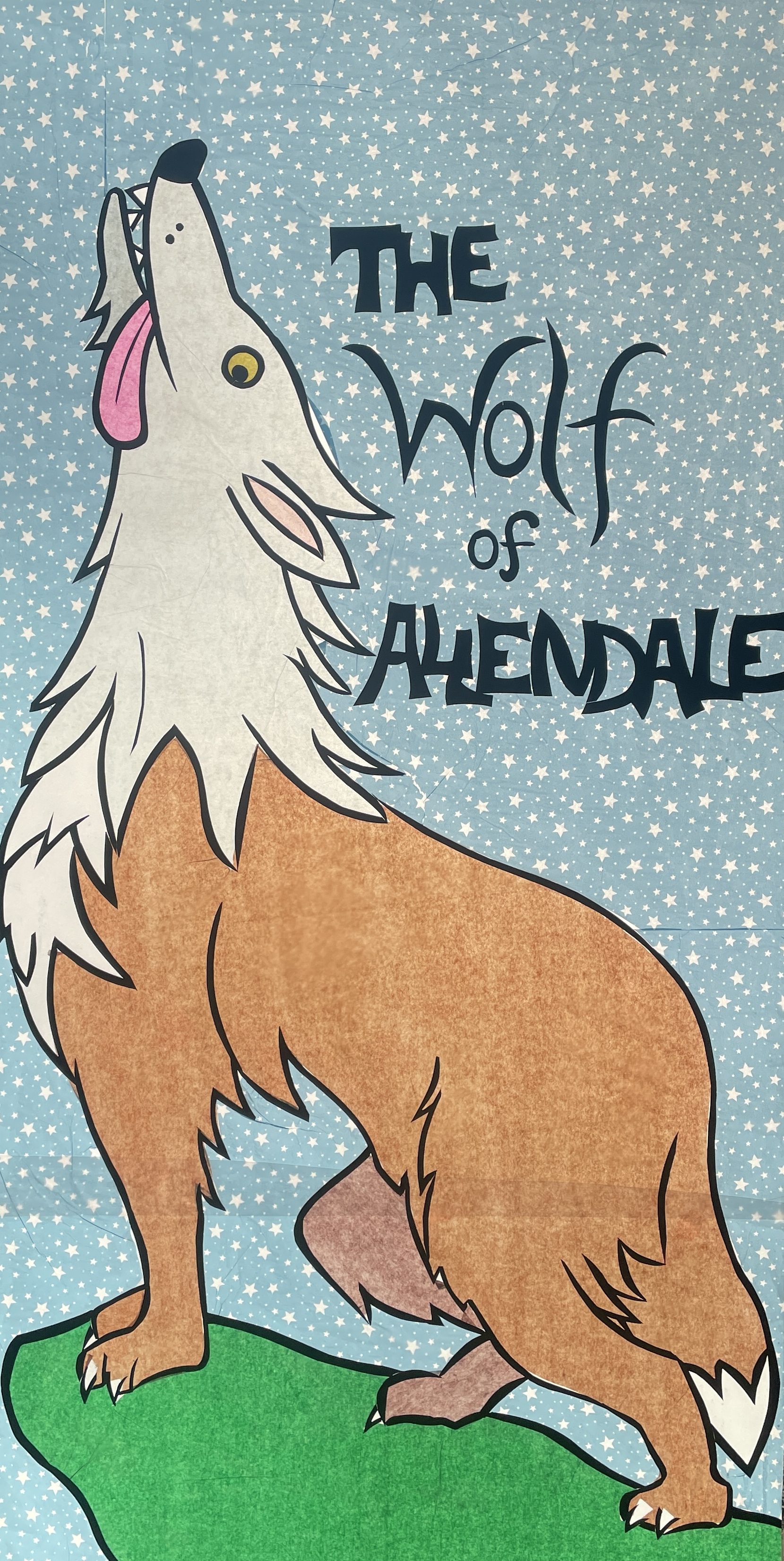 I have always wanted to experiment with window art. These three pieces are all made from black card and tissue paper and installed on large windows. The themes are all local history and folklore.